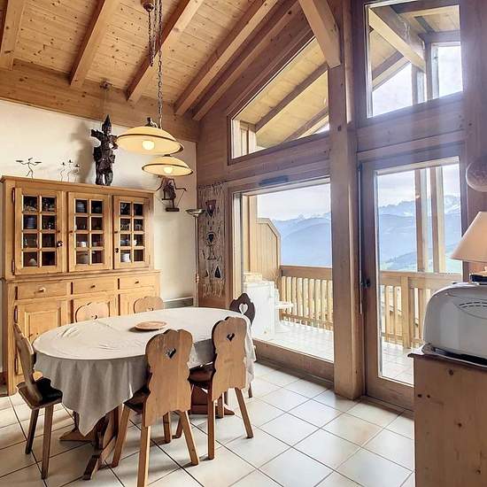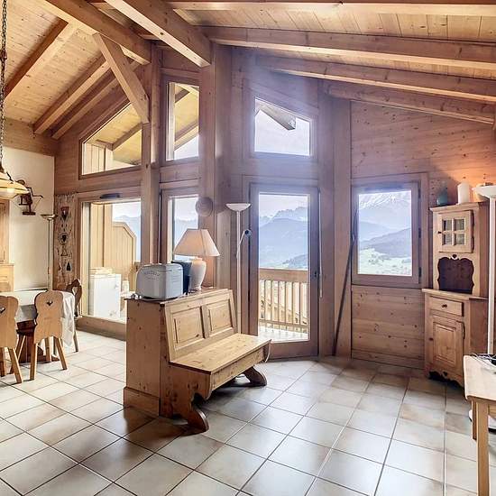 Duplex de 80 m2 environ composé de : D’une entrée, placard, une belle pièce de vie avec coin salle à manger, coin cuisine toute équipée (lave-vaisselles, lave linge avec sèche linges, four, micro-ondes, bouilloire, cafetière, frigo...) donnant sur un balcon terrasse face au Mont Blanc, un salon, une salle de bains, un toilette indépendant, une salle de douche, une chambre avec un lit de 140, une deuxième chambre avec un lit de 160 et une troisième chambre avec un lit mezzanine de 140, sur la mezzanine avec un lit d'une personne et un lit tir...