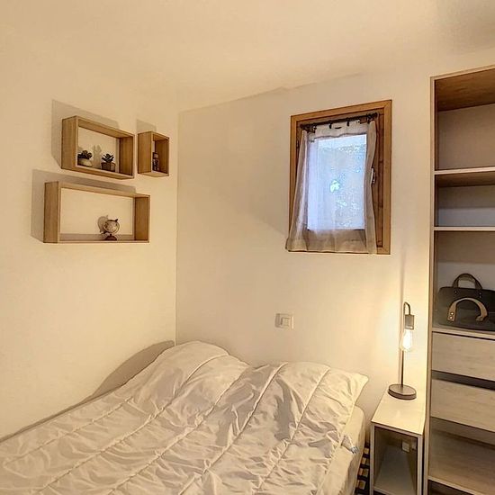 Joli 2 pièces + coin cabine d'environ 46m2 à proximité du centre village de Combloux composé : d'une entrée avec placards, coin cabine avec lits superposés de 90, une chambre avec lit de 140, une salle de bain, un wc séparé, séjour avec coin cuisine équipée (frigo, four gril, mini lave-linge...) donnant sur une terrasse en RDJ, un salon avec balcon, une chambre avec lit de 140 et coin douches. Loué avec casier à skis et 2 places de parking en sous-sol. - A régler lors de votre arrivée : Taxe de séjour et caution logement par carte bancaire u...