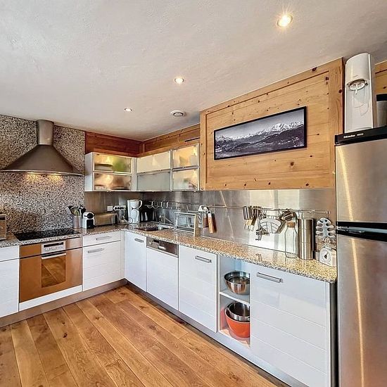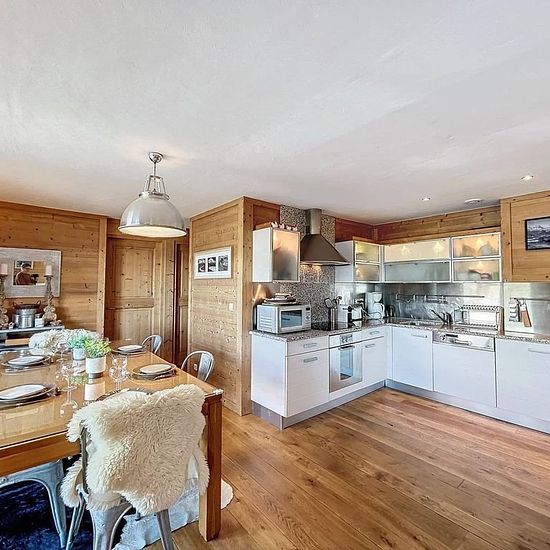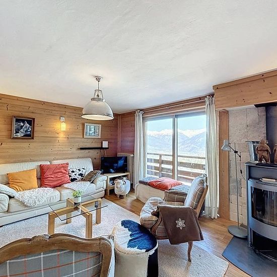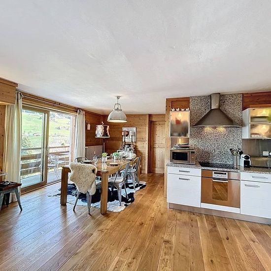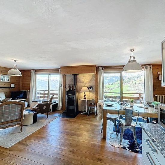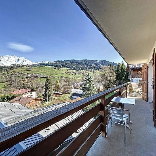 Dans une résidence, avec piscine couverte à 900m du village de Combloux, beau appartement 4 pièces environ 93m2 avec une belle vue Mont Blanc, il se compose : Une entrée, un salon séjour, une cuisine ouverte équipée, un wc, une chambre avec un lit de 160, une chambre avec un lit de 160, une chambre avec 2 lits jumeaux en 90 x 190, une salle de bain avec lave linge, une salle de douche avec wc, un balcon face au Mont Blanc. Annexe : Garage, casier à skis. - A régler lors de votre arrivée : Taxe de séjour et caution logement par carte bancaire...