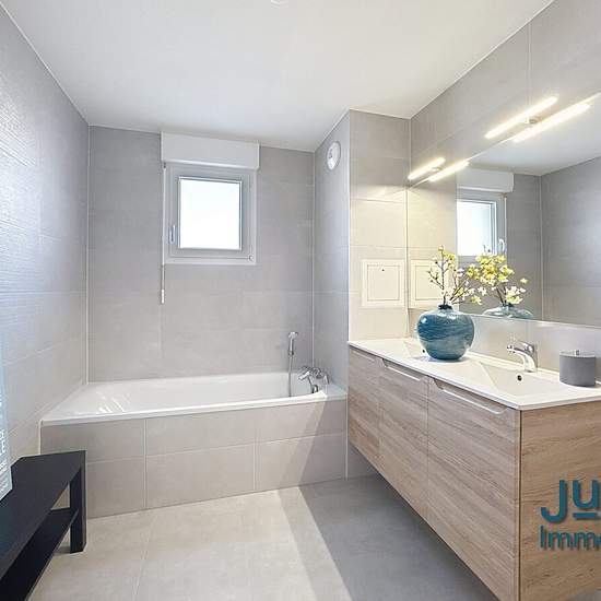 Drusenheim, Rue de l'Eau Claire, ***Mobilier conforme aux photos. ***Au calme dans une impasse, très bel appartement 4 pièces intégralement meublé au 1er étage d'une résidence neuve.. Première occupation après construction, il dispose d'une entrée avec placard, d'une cuisine équipée (vaisselle et électroménagers inclus) ouverte sur une lumineuse pièce de vie accès terrasse, de deux chambres, d'un bureau, d'une salle de bains et d'un wc séparé. Chauffage individuel au gaz de ville, garage et place privative de parking dans une cour sécurisée....