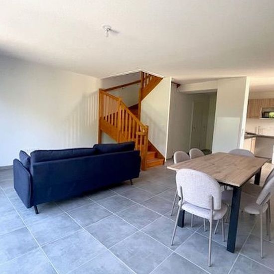 À Louer EAUNES- Appartement T4 duplex neuf de 81m² avec deux places de parking. Venez découvrir dans cette résidence neuve, un appartement T4 duplex meublé de 81.88 m² assorti de services para hôteliers (petit déjeuner, ménage, linge de maison). Situé à proximité du centre ville de EAUNES vous aurez un accès aux commerces de proximité à pied. Le logement se compose au rez-de-chaussée d'une entrée, d'un toilette et d'une salle de séjour avec cuisine ouverte donnant sur une terrasse et un jardin de 37m², à l'étage nous retrouvons trois chambre...