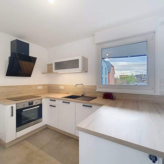 ESCHAU - Impasse Schwartz Wasser - Appartement 4 pièces de 78m² situé au 1er étage, comprenant : une entrée avec placard, un WC séparé avec branchement machine à laver, un séjour avec une cuisine équipée avec accès à une terrasse, 3 chambres et une salle de bains. Une cave, un parking et un garage sous-sol complètent ce bien. ** DISPOSITIF PINEL - location sous condition de ressources ** Chauffage collectif gaz - au sol Loyer HC : 1 070 ? + Charges : 190? (Chauffage inclus) Frais d'agence TTC : 980? (Etat des lieux inclus) DISPONIBLE DE SUIT...