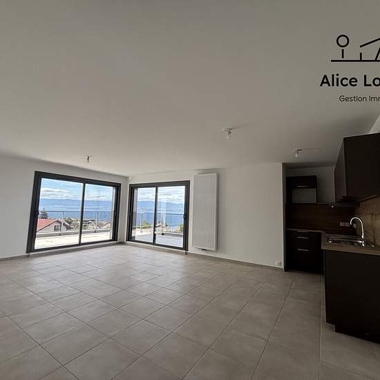 SUPERBE T4 EN ATTIQUE AVEC VUE LAC PANORAMIQUE - TERRASSE 60M2 VUE LAC- GARAGE - PARKING Au 3ème et dernier étage d'une résidence de standing neuve, idéalement située sur les hauteurs, lui offrant un calme absolu et une vue dégagée sur le lac, Superbe T4 en attique de 96m2 se composant: une cuisine équipée ouverte sur le séjour un dégagment avec rangements deux chambres une suite parentale avec salle d'eau et WC une salle de bains un WC En complément, l'appartement dispose d'une superbe terrasse exposé avec une vue exceptionelle un parking e...