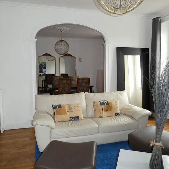 En centre ville de Fontainebleau, à proximité immédiate des commerces et du secteur piétonnier. Au 3ème étage de ce bel immeuble ancien, appartement spacieux et traversant, entièrement meublé et équipé, comprenant : Entrée, cuisine séparée équipée, double réception de 38 m² avec de jolis détails décoratifs, chambre principale de 18 m², autre chambre de 11 m², salle d'eau avec douche, toilettes séparées. Appartement alliant ameublement de style ancien et aménagement modernes et fonctionnels.Informations LOI ALUR : Charges : 50 ¤ /mois.Règleme...
