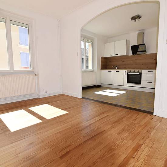 Toutes commodités à pied. Au centre du vieux village, maison comprenant : - sous-sol : cave env 15 m² - RdC : volume d'environ 40 m² à usage de rangement skis, vélos, atelier - au 1er étage : cuisine équipée ouverte / séjour, salle d'eau avec WC - au 2ème étage : 2 chambres + bureau (ou chb d'enfant) Chauffage individuel gaz de ville. Disponibilité rapide. Fraction des honos incombant au locataire : rédaction d'acte 355 euros + états des lieux 214 euros = 569 euros TVA à 20% incluse. Renseignements complémentaires : ARTEMIS Immobilier à GONC...