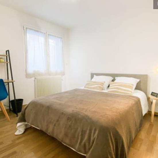 Beau T4 de 64m² spacieux et bien décoré tout équipé pour 6 personnes Découvrez notre beau T4 de 64m² très bien équipé, calme et assez spacieux situé proche de Vallier Libération. ________________________________________ Votre logement : Cet appartement cosy se compose : - d'une belle pièce de vie avec cuisine ouverte et coin salon avec télévision. - de 3 chambres indépendantes avec lit double, placard et bureau. - d'une salle de bain avec douche et lave-linge. - d'un WC indépendant.