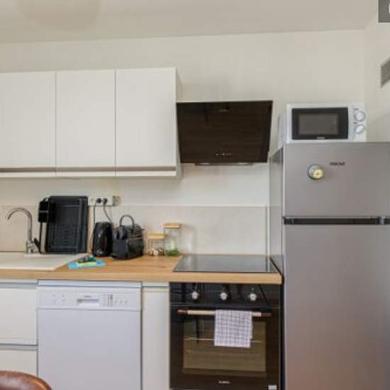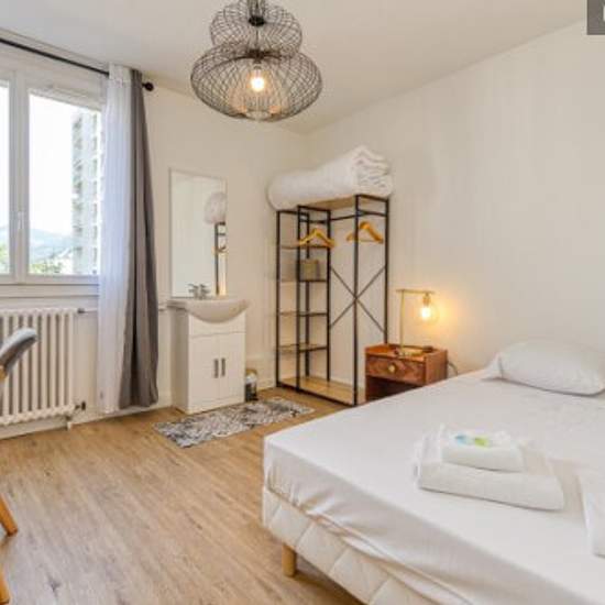 Détendez-vous dans ce magnifique appartement de 95m2, totalement rénové offrant des prestations de qualité: 4 belles chambres toutes équipées d'un bureau et 2 d'entre elles, d'une sdb avec douche; une cuisine aménagée et ouverte sur le séjour; deux balcons. Les petits +: - Linges de lit et de toilette fournis - Lave-linge - Sèche-linge - Lave-vaisselle - Machine à café Nespresso - Climatisation - Wifi fibre dans tout le logement Idéal pour des vacances en famille ou un séjour professionnel! - Situé au 3ème étage avec ascenseur - Stationnemen...