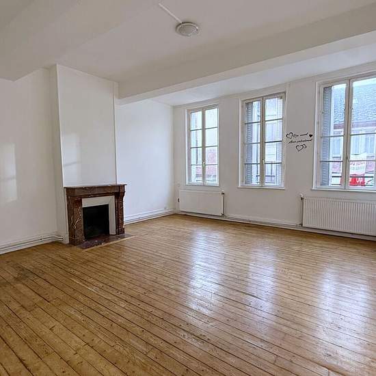 Appartement À Louer - LA FÈRE. Appartement sur 2 étages à louer dans un immeuble comprenant : une entrée, un salon/ séjour lumineux, une cuisine aménagée, un WC, une salle d'eau, 3 chambres.