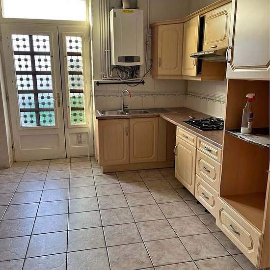 Une maison au première étage, un salon trois chambres, une cuisine meublée, une salle de bain avec WC, deux couloirs, une grande terrasse. Mon numéro : [hidden information]