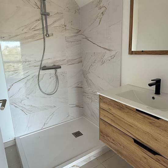 A LOUER LANGUEUX CENTRE - Appartement T4 neuf de 124m² comprenant une entrée avec placard, une grande pièce de vie donnant sur une terrasse, une cuisine équipée, une buanderie entièrement aménagée. Un dégagement avec placards, 2 chambres, une salle de douche avec WC, une suite parentale avec salle d'eau. Deux places de stationnement. Chauffage gaz de ville. TRES BEAUX VOLUMES, LUNIMEUX, Belles Prestations.