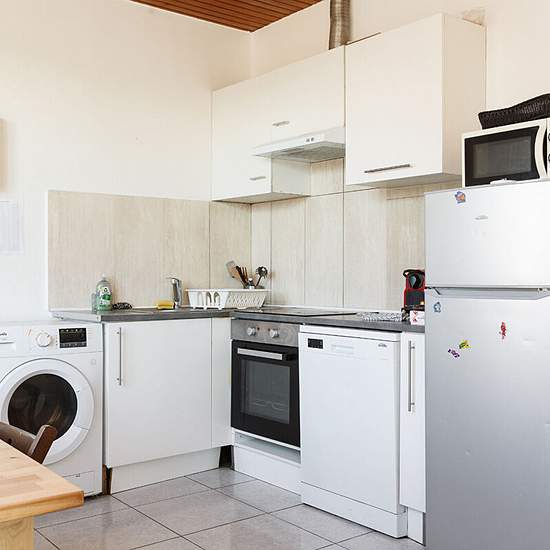 Very nice 4-room apartment (2 bedrooms + office) on the 2nd and top floor of a small building in a residential area. Layout: Living room with kitchenette, 2 bedrooms, 1 office, shower room, toilet, large private terrace of 12 m². Equidistant from the center of Paris and Roissy Charles de Gaulle Airport, and located near the exhibition center, about 15 minutes from Le Bourget RER station and the Stade de France, in a residential area — a peaceful and central home. Excellent public transport links, and a supermarket nearby. This furnished apar...