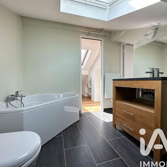 Iad france - mirjana djermanovic vous propose : à moins de 15 minutes à pied de la gare rer a / e de val de fontenay, dans un bel immeuble ancien en meulière, appartement en duplex plein de charme de 63 m² (90 m² au sol), au 2e et dernier étage sans ascenseur. Très lumineux, le séjour traversant est exposé sud. L’entrée dessert un charmant double séjour avec une belle hauteur sous plafond et parquet ancien, une cuisine aménagée séparée, une chambre et une salle d’eau avec wc. Un escalier dessert les combles aménagés en 2 petites chambres trè...