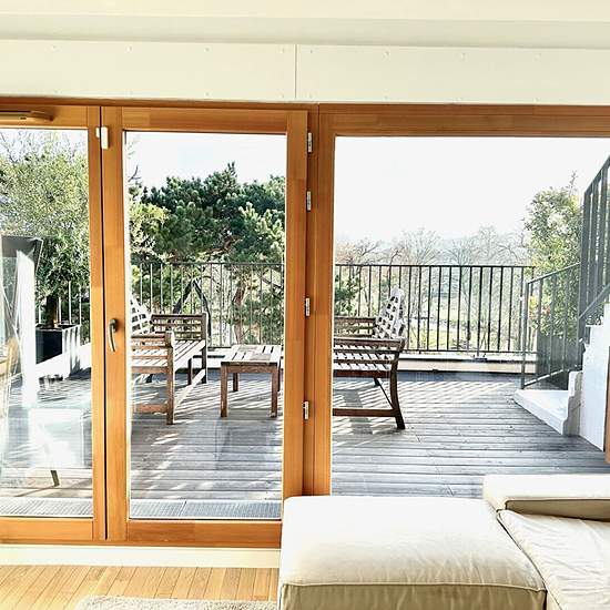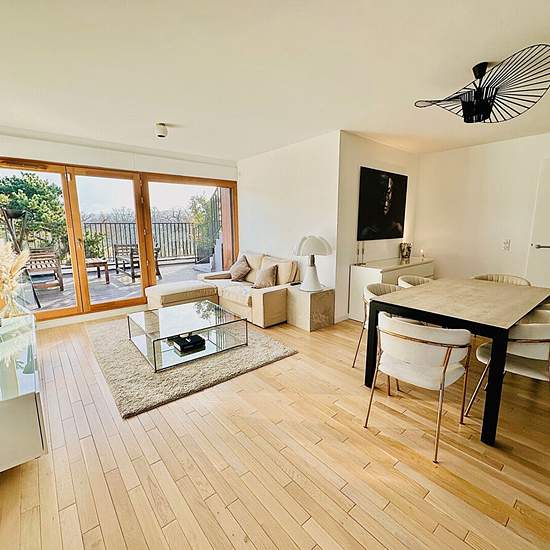 DISPONIBLE FIN JANVIER 2026. Dans une résidence de standing très récente datant de 2022 et au sein d'un joli parc arboré , venez découvrir ce bel appartement MEUBLE de 100m² disposant également d'une terrasse de 100m² .Il se compose d'une entrée avec vestiaire , d'un séjour offrant une triple exposition avec cuisine américaine entièrement équipée et donnant sur une terrasse faisant le tour de l'appartement , une chambre avec placards et sa salle de bains et wc ; à l'étage , une suite parentale donnant sur une seconde terrasse , suite avec dr...