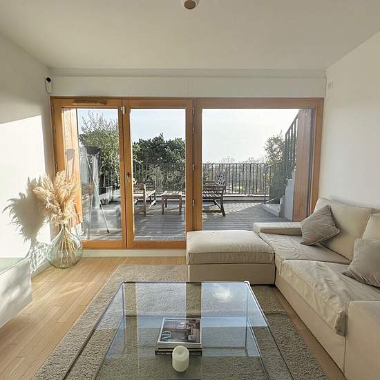DISPONIBLE FIN JANVIER 2026. Dans une résidence de standing très récente datant de 2022 et au sein d'un joli parc arboré , venez découvrir ce bel appartement MEUBLE de 100m² disposant également d'une terrasse de 100m² .Il se compose d'une entrée avec vestiaire , d'un séjour offrant une triple exposition avec cuisine américaine entièrement équipée et donnant sur une terrasse faisant le tour de l'appartement , une chambre avec placards et sa salle de bains et wc ; à l'étage , une suite parentale donnant sur une seconde terrasse , suite avec dr...