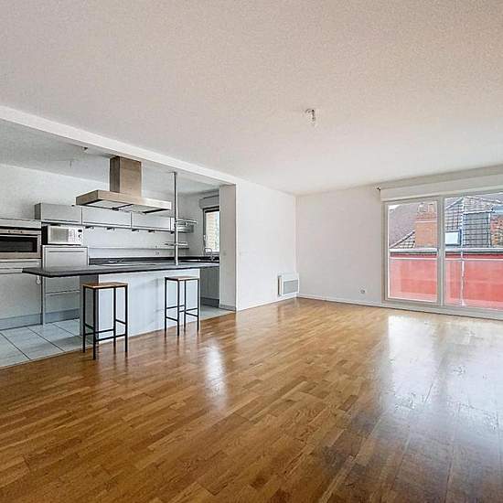 LILLE - 4-room apartment (T4) of 108 m² with balcony, garage and cellar - Located in the immediate vicinity of train stations and shops, this beautiful 108 m² T4 apartment offers a pleasant and convenient living environment. It consists of a large bright living room with an open fitted kitchen, 3 bedrooms, 2 bathrooms, a WC, a well-exposed balcony, a garage and a cellar. A must-see — don’t wait! Rent of €1,595.00 per month, charges included, of which €135.00 per month is an advance on charges (subject to annual reconciliation). Estimated ann...