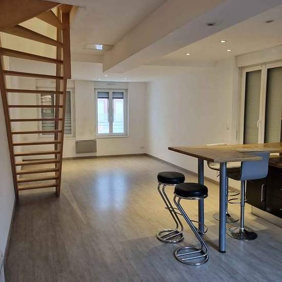 Loue appartement 80 m2 très bien situé avec terrasse en centre ville de lillers. 2 chambres et 1 salle de bain a l étage 1 salon et cuisine ouverte 1 cellier + dressing