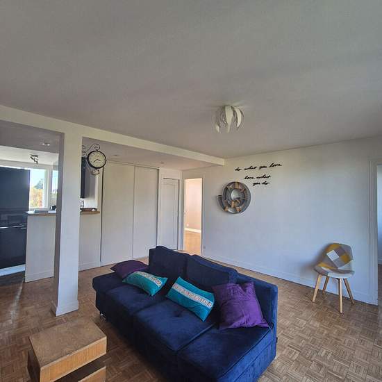 Nous vous proposons un bel appartement meublé quatre pièces de situé au 2ème étage et dans une petite copropriété à 5 minutes à pieds de la gare comprenant : Une entrée donnant directement dans un grand double séjour lumineux avec balcon (possibilité de faire une troisième chambre), une cuisine ouverte aménagée et équipée, deux chambres avec placard, et d'une salle de douches avec wc. Une place de parking en extérieur complète le bien. La résidence est située également à 2 pas des commerces et des écoles ainsi que des commodités de transport...