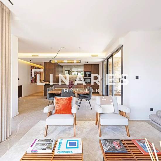 ALPILLES STYLE - Appartement T4 de 121 m2 - terrasses - 13007 MARSEILLE Llinares Immobilier vous présente Alpilles Style, une adresse rare face à la mer, au c?ur de la résidence sécurisée et prestigieuse Les Alpilles. Entièrement repensé par un architecte d'intérieur de renom, cet appartement de 121 m² séduit par ses volumes généreux, sa luminosité et ses finitions haut de gamme. Le vaste séjour s'ouvre sur deux terrasses offrant une double exposition spectaculaire : vue mer panoramique d'un côté, écrin de verdure de l'autre. La cuisine ouve...