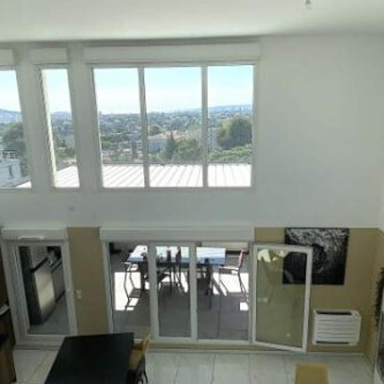 Fiche Id-UBW24918g : location Marseille, T4 duplex toit terrasse d'environ 106.00 m2 comprenant 4 piece(s) dont 3 chambre(s) + Terrasse de 124 m2 - Vue : 360? mer, colline,notre dame - Construction R?cente - Equipements annexes : terrasse - garage - parking - digicode - double vitrage - ascenseur - cellier - et Climatisation r?versible - chauffage : Electrique Pergola/Cuisine D'?t? - A louer 2 800 Euros c.c./mois dont Charges copro. : 100 Euros/mois - Classe Energie C : 111 kWh.m2.an - (DPE ancienne version) - Plus d'informations disponibles...