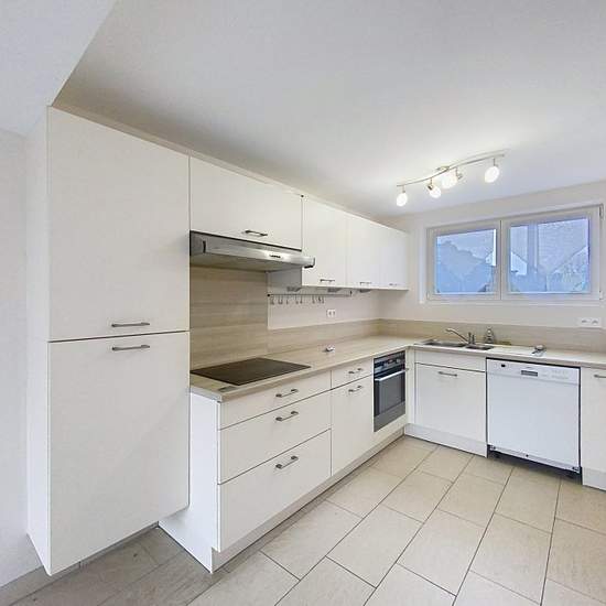 MUNDOLSHEIM - DUPLEX 4 PIECES. MUNDOLSHEIM - Rue des Chasseurs - Duplex 4 pièces de 88m² comprenant au rez-de-chaussée : une entrée, un séjour/ salle à manger avec poêle à granules, une cuisine meublée ouverte sur le séjour, et une terrasse avec jardin, et un wc séparé. A l'étage : trois chambres, une salle de bains et un second wc séparé. Annexe : une cave et double stationnement. En cours : réfection des peintures du logement Chauffage individuel électrique - DPE : D Loyer HC : 1 112 € + Charges : 70 € Frais d'agence TTC : 1 112 € (Eta...