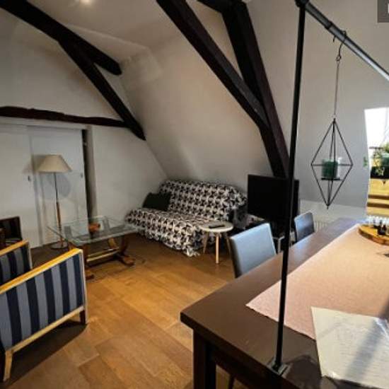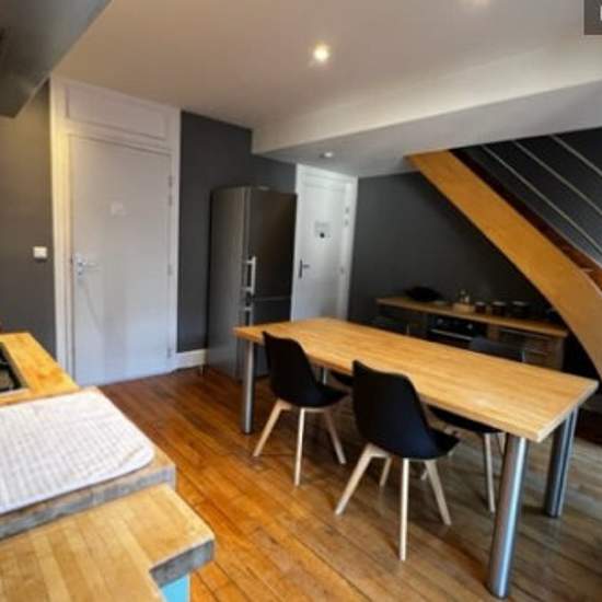 Grand duplex en hypercentre de Nancy joliment meublé avec vastes chambres, cuisine très bien équipée. L'appartement est au 2eme et 3eme étage d'un immeuble bourgeois, calme. Tous les commerces à proximité ainsi que les transports en commun. La place Stanislas est à deux pas. Nous pouvons fournir un parking à proximité immédiate (supplément mensuel de 150 euros.