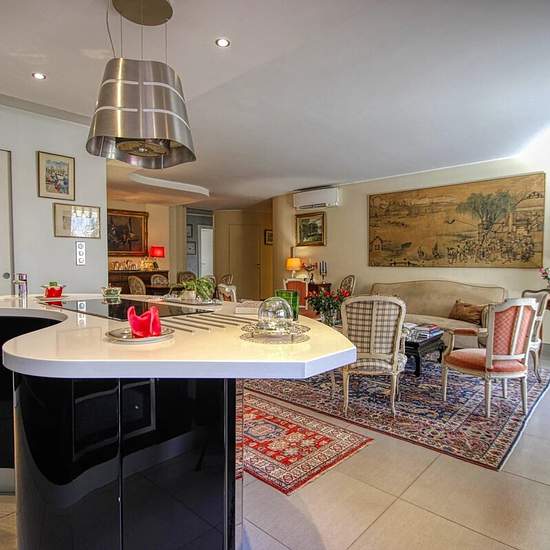 Quartier des Musiciens, situé au 4ème étage d'un immeuble de standing, très bel appartement de 4 pièces en parfait état composé d'une entrée avec placards, un immense salon-salle à manger avec cuisine moderne équipée ouverte et son cellier attenant, 3 chambres avec placards dont un chambre parentale avec sa salle de bains (douche, baignoire et WC) en suite, une salle d'eau, un toilette indépendant, une terrasse sur le salon et un balcon. Appartement traversant, très calme. climatisation, beaucoup de placards, ascenseur. Très belles prestatio...