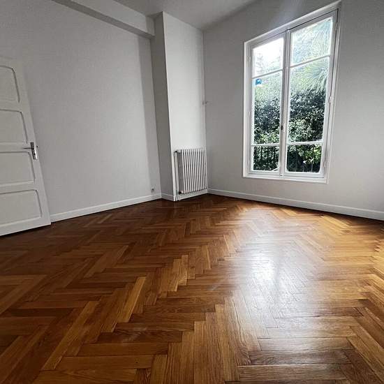 In a Niçoise house offering generous proportions, comprising two apartments and including use of part of the garden. Unfurnished 3/4-room apartment of 93 m² in good condition, consisting of an entrance hall with closet, living room, dining room with a bar area and large cupboard, 2 bedrooms, a large fitted kitchen, a bathroom with shower and bathtub, 2 separate WCs and a 10 m² cellar. Close to amenities.