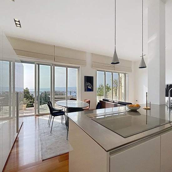 NICE MONT BORON – LONG-TERM FURNISHED RENTAL – PANORAMIC SEA VIEW Located in the highly sought-after Mont Boron area, within an early 20th-century former hotel, this 143 m² apartment offers high-end finishes and an enchanting view over the Baie des Anges. Fully furnished and tastefully decorated, it benefits from a large southwest-facing terrace, a peaceful setting and a unique atmosphere, combining period charm with modern comfort. Large living room with a very functional, fully equipped open-plan kitchen. A master bedroom opening onto the ...