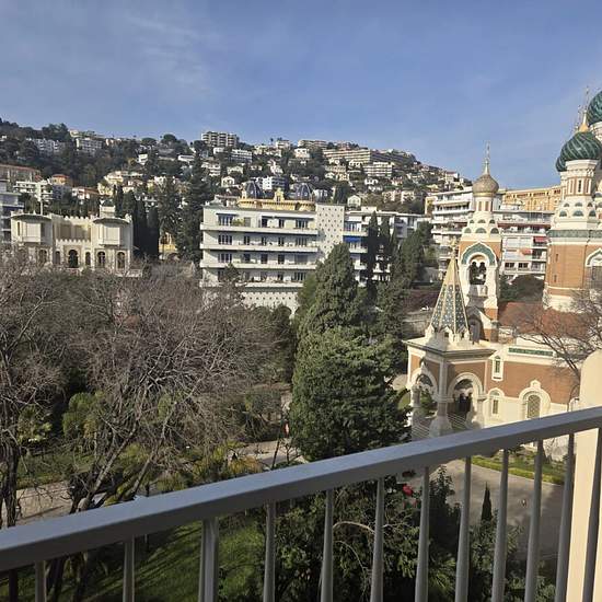 About this property Very nice 4-room apartment (T4) completely renovated on the second-to-last floor with a terrace on a quiet street facing the Russian Church. The apartment benefits from a double living room of 37 m², an equipped kitchen, three bedrooms with closets, a bathroom and a shower room. All rooms open onto the outside. Reversible air conditioning, electric shutters and blinds. Garage + cellar. Rent: €2,940/month Estimated charges: €315/month Security deposit: €2,940 Agency fees: €13.12/m²