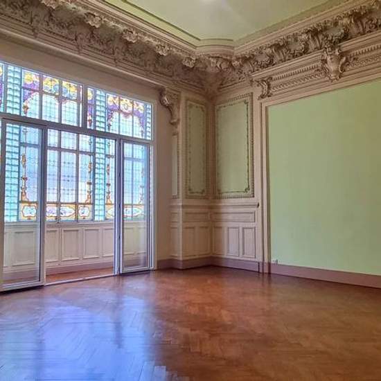 Nice city center - We offer for rent a magnificent 4-room, through apartment with generous proportions. This property includes an entrance hall, a spacious living room with direct access to a winter garden, three large bedrooms including a very large one in "Versailles" style that can serve as either a bedroom or a dining room, with ceiling mouldings, a fireplace and stained glass, a kitchen and two shower rooms with toilets. High ceilings, parquet flooring, air conditioning. An exceptional property! Rare on the market! Information on the na...