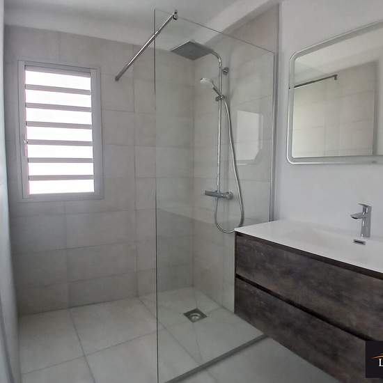 Au dernier étage d'une résidence récente et sécurisée, appartement F4 d'une superficie d'environ 101m² composée d'une cuisine équipée er aménagée avec de nombreux rangements, d'une buanderie, d'un lumineux séjour, d'un WC indépendant, de trois chambres dont une parentale avec dressing avec salle d'eau, d'une salle d'eau principale avec WC et d'une grande terrasse rooftop d'environ 151m² avec petit espace jardin offrant une vue mer imprenable. Trois places de parking et un cellier viennent compléter ce bien. Charges locatives : 15.000 F CFP/m...