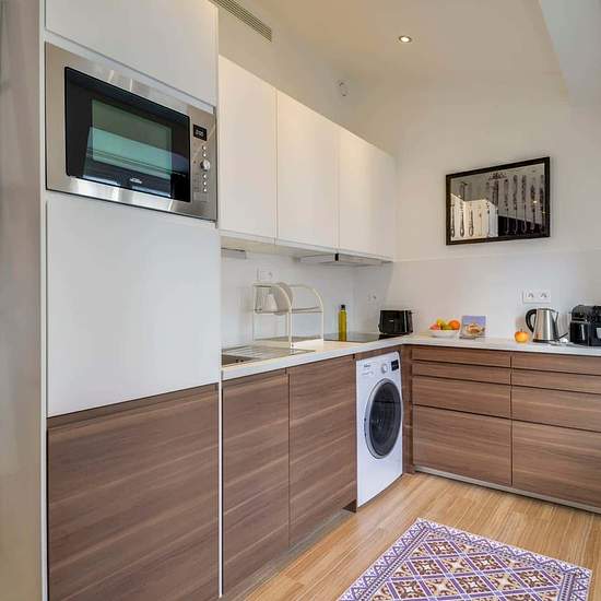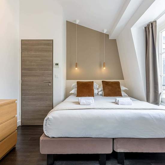 [EN] Here in the first arrondissement, the three-bedroom Monsigny IV Sweett apartment introduces you to Parisian charm and elegance. Our local interior designer has skillfully combined the antique and contemporary styles of Paris by mixing sleek surfaces with whimsical decorative accents. With three luxurious bedrooms, your entire party will feel warmly welcomed, while the modern kitchen is ideal for in-house dining. The breathtaking view of the city can be enjoyed through the picture window. Nestled along the picturesque banks of the River ...