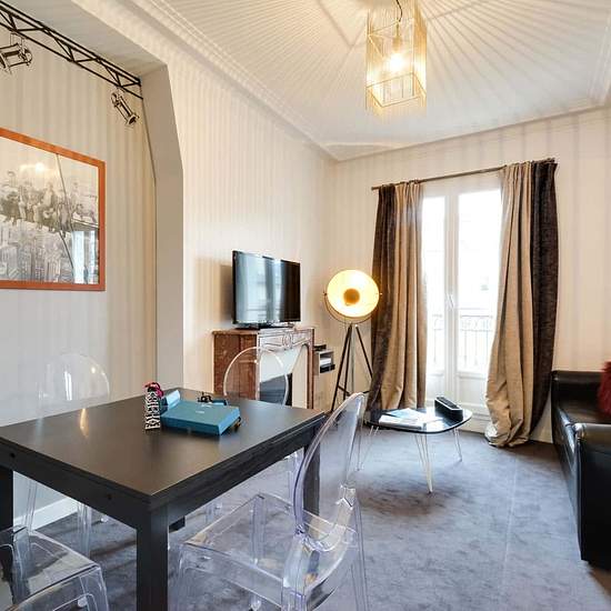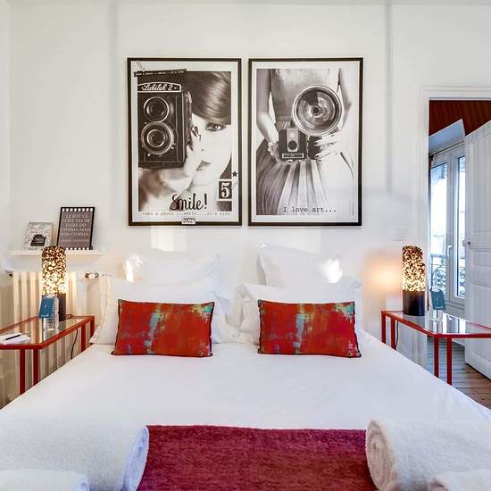 [EN] The Saint Germain V Sweett apartment is a charming one-bedroom apartment that puts you in the lively heart of Paris. Inspired by the magic of French cinema, our local interior designer has filled this fifth-floor apartment with bold colours and pop art. A sweeping staircase is straight from the movies, and film-themed wall art recalls the glory days of Hollywood. A cosy balcony overlooks the City of Lights. A fully equipped kitchen has everything you need for gourmet cooking. Nestled in the charming Saint-Germain-des-Prés neighbourhood ...