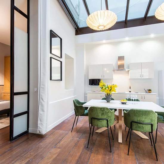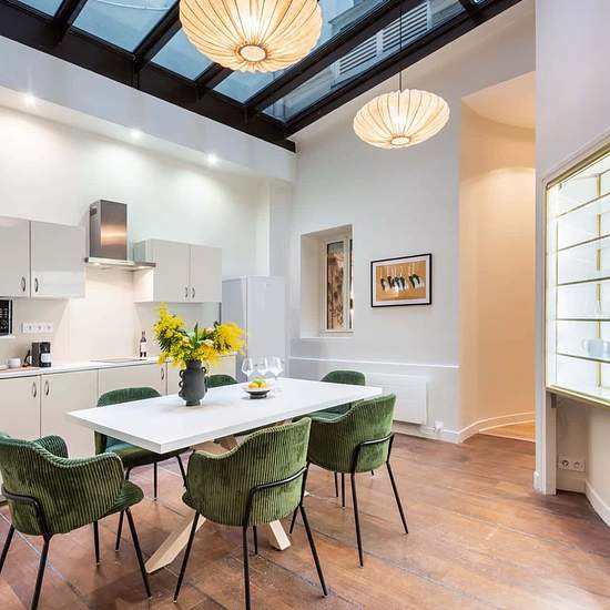 [EN] The Artois Sweett apartment is a charming three-bedroom located in the glamorous VIIIth arrondissement of Paris. Our local interior designer has infused a serene atmosphere into the space through a carefully chosen palette of colours, natural wood patterns, and clear marble. The plush bedrooms provide a relaxing haven for your vacation, while the fully equipped kitchen allows you to unleash your culinary creativity. Located in the VIIIth arrondissement, just a few steps away from the iconic Avenue de Champs-Elysées, this neighbourhood i...