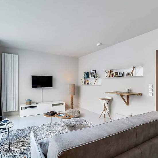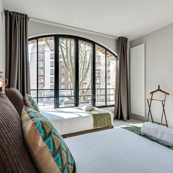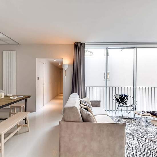 [EN] The Brune VII is an urban three-bedroom Sweett apartment that reflects perfectly the modern diversity of its neighbourhood here in the XIV arrondissement. With gentle colours and lots of natural light, our local interior designer has created a soothing city hideaway. Sweeping windows, flowing drapery, and soft textiles make this space peaceful and inviting. A fully equipped kitchenette has everything you need for an in-house meal. The plush living room will make visitors feel at home, and the bedrooms ensure you the sweetest of dreams. ...