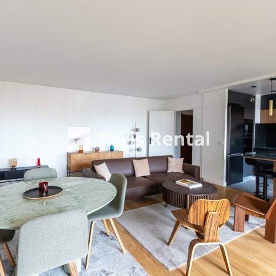 Appartement n° 62637Pas de colocationEntièrement rénové, cet appartement de 94 m² offre un cadre calme et confortable grâce à une isolation thermique et phonique. Situé place de la Catalogne, dans le 14? arrondissement de Paris, au 6? étage d'un immeuble des années 1980, il offre une vue imprenable sur la Tour Eiffel. Il se compose d'un double séjour climatisé, d'une cuisine entièrement équipée, de trois chambres, d'une salle de bains et d'une salle de douches. Il dispose également d'un grand balcon et d'une cave. Visite virtuelle disponible...