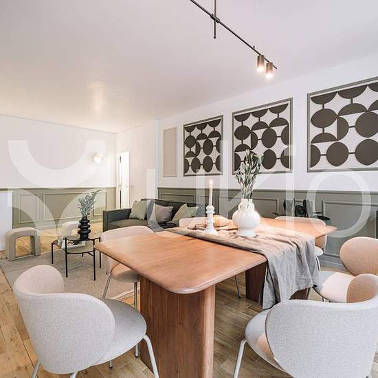 Magnifique appartement rénové et meublé rue Scheffer, dans le quartier du Trocadéro, dans le 16e arrondissement. Il est situé au 2e étage avec ascenseur, à proximité des stations Trocadéro, La Muette et Rue de la Pompe. La place du Trocadéro, l'Aquarium de Paris et le Palais de Tokyo sont à proximité. L'appartement comprend trois chambres avec trois lits doubles, un salon, une cuisine, deux salles de bains et des toilettes séparées avec lavabo. Le lit est équipé de draps moelleux, parfaits pour une bonne nuit de sommeil. La cuisine est entiè...