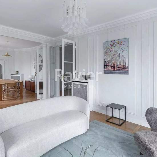 4p meublé - rue jean de la fontaine - maison de la radio au 6ème étage avec ascenseur d'un immeuble ancien, un appartement loué meublé de 126 m² comprenant : entrée, séjour, salle à manger, trois chambres, cuisine aménagée et équipée, salle de bains, salle d'eau, wc séparé, placards et une buanderie. Services inclus : box internet - 1h00 de ménage / semaine - assistance - coffre-fort - alarme. Zone soumise à l'encadrement des loyers. Bail loi 89 en résidence principale. Loyer de référence : 28.3€ / m² loyer de référence majoré (loyer de base...