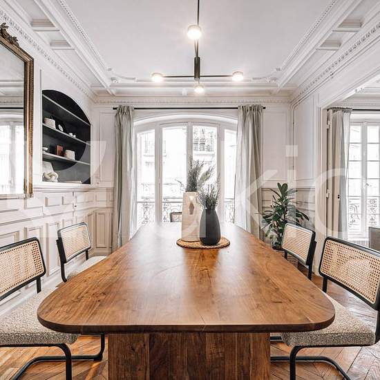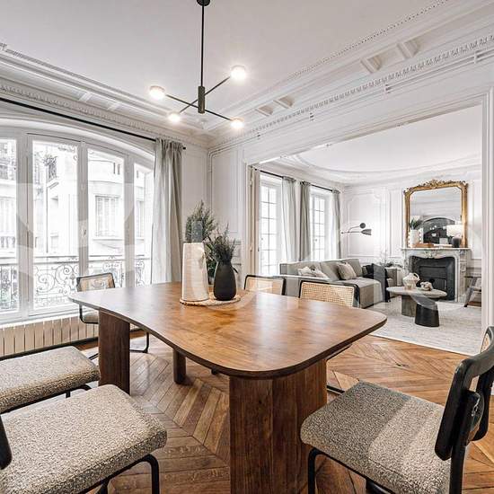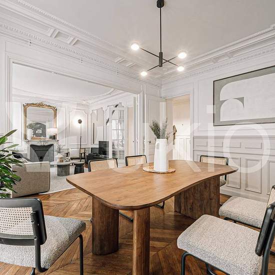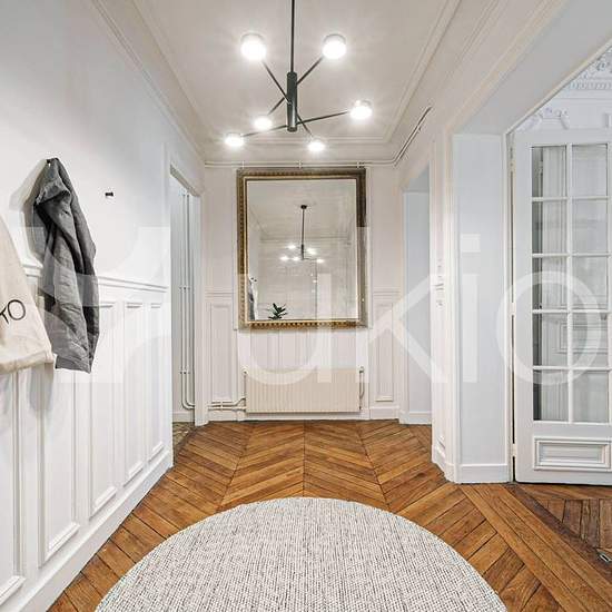 Magnifique appartement rénové et meublé situé sur rue, dans les Ternes, dans le 17e arrondissement. Il est situé au 1er étage avec ascenseur, à proximité des Courcelles, des Ternes et du Pont Cardinet. Les attractions à proximité comprennent l'Arc de Triomphe, le Parc Monceau et le Musée Jacquemart-André. Il se compose de trois chambres avec un lit simple et deux lits doubles, d'un salon, d'une cuisine, d'une salle de bains et de toilettes séparées avec lavabo. Le lit est équipé de draps doux, idéal pour une bonne nuit de repos. La cuisine e...