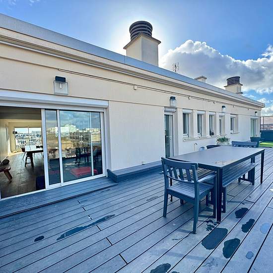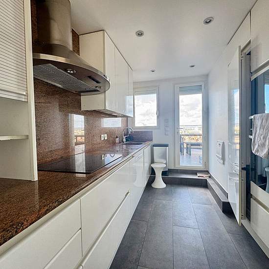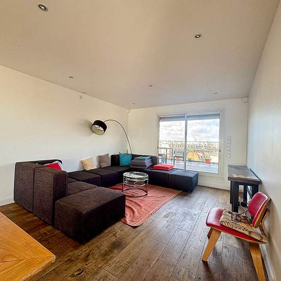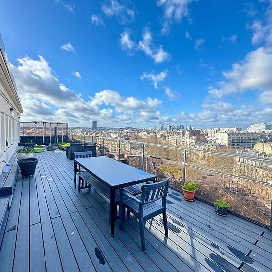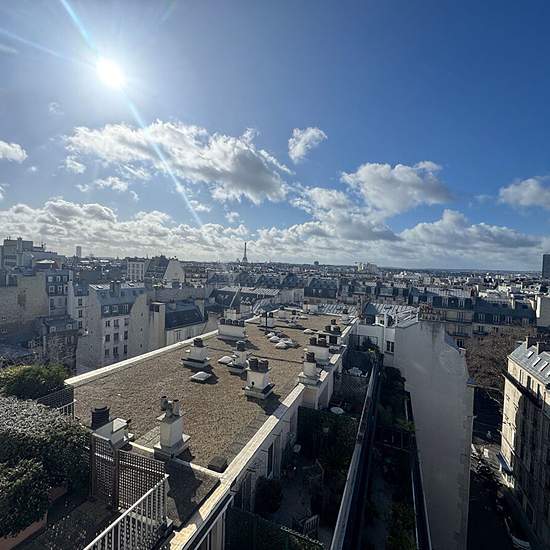 Les loges immobilier vous propose à la location en bail civil ou résidence secondaire, un appartement coup de coeur à Paris 17, en dernier étage, d'une superficie de 103,50m2 et 62 m2de terrasse, vue tout Paris. Ce bien est composé d'une entrée, d'un vaste séjour de 55 m2 environ donnant sur la terrasse (62 m2 environ) vue Paris, de deux chambres, une cuisine aménagée, une salle de bains, une cave et un parking en sous sol. rendez-vous possible à partir de lundi 16 février Alexandre DESNOYERS (EI) Agent Commercial - Numéro RSAC : - .