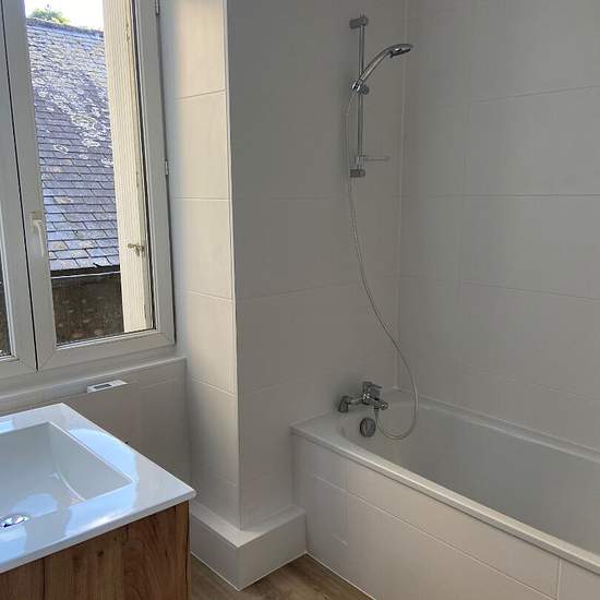 Appartement T4 rénové comprenant une pièce de vie avec coin cuisine équipé et aménagé (hotte, plaque de cuisson, four), trois chambres, placard, une salle de bain, deux WC. Loyer : 760 CC Charges par mois provisions : 50 dépôt de garantie : 710 honos : 562.32 ttc dont edl : 207 surf hab : 69.40 m².