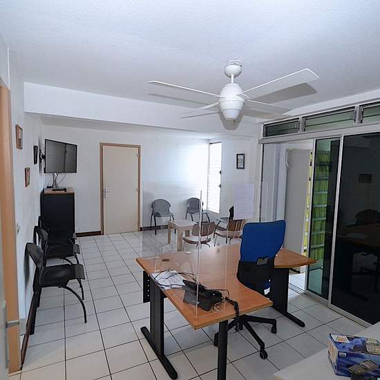 Situé au 9ème étage avec ascenseur d'une tour en plein centre de Pointe à Pitre ce logement utilisé pendant plus de 30 années par un médecin, est proposé exclusivement à la location pour professions libérales. Ce local est déjà configuré comme cabinet médical, ce qui permet une installation rapide sans travaux importants pour un professionnel de la santé ou pour une activité similaire. Il se compose d'une salle d'attente, de trois pièces climatisées, d'une zone d'accueil, d'une cuisine, d'une salle d'eau, d'un wc indépendant et d'une terrass...