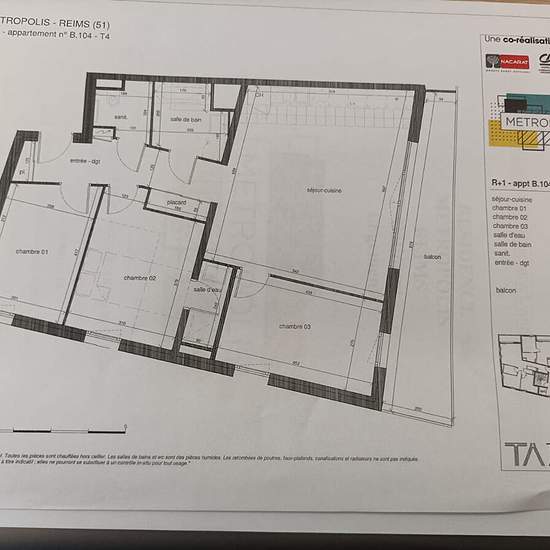 T4 situé 1 Rue des Soeurs Etienne , Résidence METROPOLIS à Reims SOUMIS A PLAFOND DE RESSOURCES LOI PINEL Cet appartement situé au 1er étage d'une copropriété est composé d'une entrée donnant sur une chambre ainsi qu'une suite parentale avec salle d'eau incluse , une troisième chambre toute aussi spacieuse donnant sur la terrasse , une belle pièce de vie avec cuisine meublée et équipée donnant également sur la terrasse, une salle de bain et un sanitaire DISPONIBLE DE SUITE Loyer: 940 euros / Mois Provisions sur charges avec régularisation an...