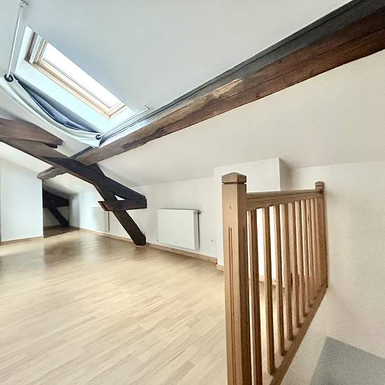 T4 DUPLEX - CENTRE RIVE DE GIER Vous allez aimer : - l'entrée avec placard, pratique pour le rangement - la cuisine séparée avec un accès direct sur le balcon - le balcon, offrant un agréable espace extérieur - la pièce de vie lumineuse, agrémentée d'une cheminée décorative qui apporte du cachet. - les poutres apparentes, ajoutant charme et caractère - les rangements intégrés dans la pièce de vie, optimisant l'espace. - le vaste dégagement à l'étage, permettant d'aménager un coin salon ou bureau, selon les besoins - la salle de bains, équipé...