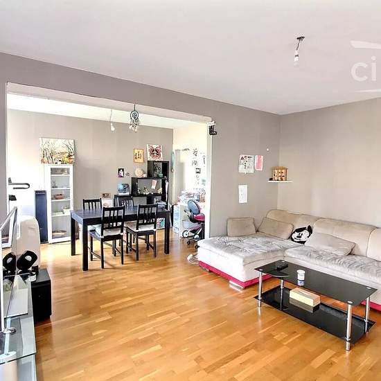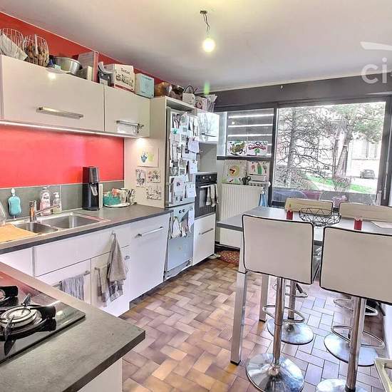 Jolie appartement T4+ au 1er étage avec ascenseur proche de toutes commodités. Cet appartement se compose ainsi : une entrée avec placard et un cellier, un grand dégagement avec placard desservant le reste de l'appartement. Une cuisine meublée et équipée (four, plaque, hotte, réfrigérateur, lave vaisselle), une grande pièce de vie de près de 30m2 avec un coin salon et salle à manger. 2 balcons dont un de plus de 9m2 exposés Est et Sud complète ce logement. 3 chambres dont une avec son balcon privatif. Cette appartement dispose d'une cave au ...