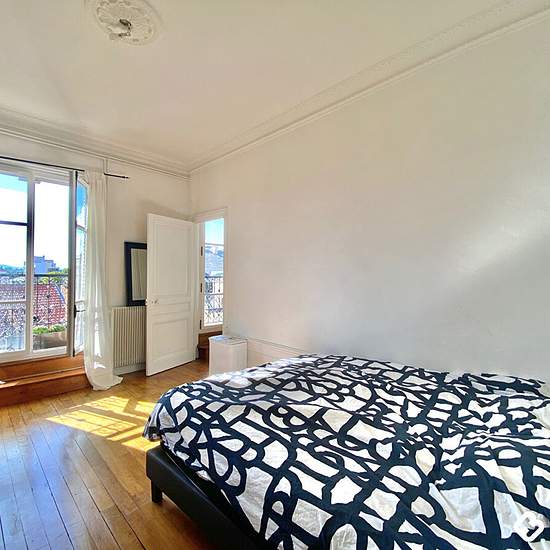 L'agence HB Immobilier vous propose ce très bel appartement de type 4 perché au 4ème et dernier étage dans un immeuble Haussmannien, rue Brison à Roanne et à proximité immédiate de tous les commerces. Il se compose d'une belle entrée avec placard, une salle à manger, une belle cuisine aménagée et équipée (four, micro-ondes, plaque de cuisson, hotte, lave-vaisselle) séparée par une belle verrière, un grand salon 25m2 avec son très beau parquet, une grande chambre de plus de 22m2 avec son dressing attenant de 12m2, une deuxième chambre de 15m2...