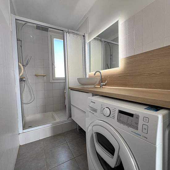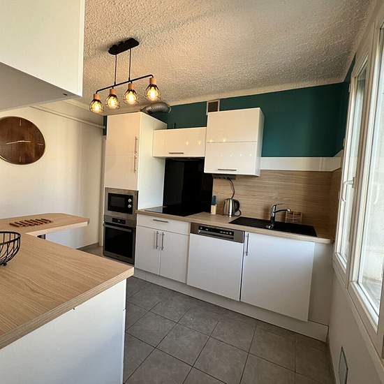 RODEZ - Quartier CARDAILLAC : T4 meublé traversant et lumineux, au dernier étage avec vue panoramique comprenant un hall d'entrée avec un débarras, un salon, une cuisine aménagée (meubles hauts et bas, table bar, plaque de cuisson induction, hotte aspirante à recyclage, four à catalyse, micro-ondes, lave-vaisselle, frigidaire congélateur) avec un cellier, deux chambres, un bureau, une salle d'eau aménagée (meuble vasque avec un miroir, cabine de douche, lave-linge), un WC indépendant. Chauffage individuel gaz avec thermostat d'ambiance Annex...