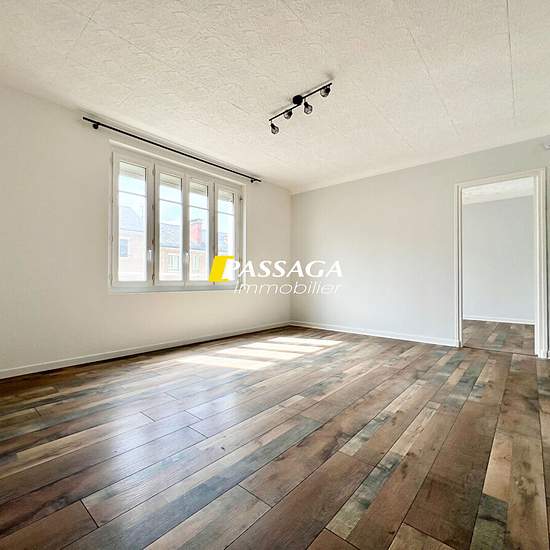 RODEZ : Quartier Cardaillac T4 traversant lumineux comprenant un hall d'entrée avec placard, une cuisine aménagée (meubles hauts et bas, hotte aspirante à recyclage, plaque de cuisson induction, four, lave-vaisselle) avec un cellier, un séjour, un dégagement coin nuit, trois chambres, une salle d'eau aménagée, un WC indépendant. Annexes : Une grande cave et un garage