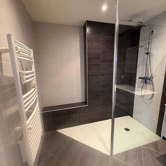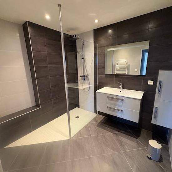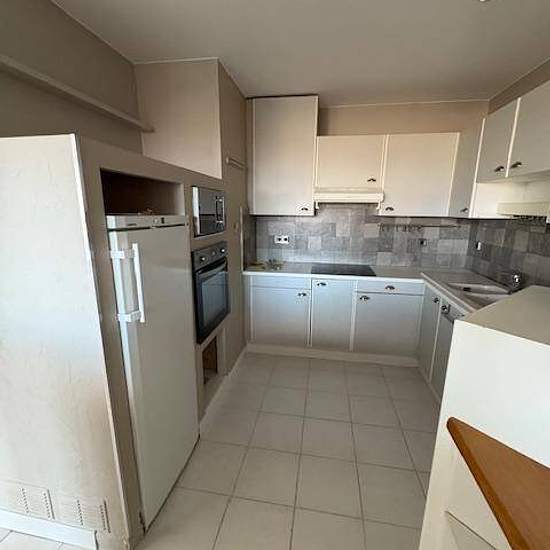 Appartement T4 au -1 comprenant une entrée, une cuisine américaine avec éléments hauts/bas, une hotte, un four, plaques électriques, un micro-onde et un branchement pour machine à laver. Un séjour donnant sur une terrasse, une chambre avec placard et salle d'eau privative comprenant un wc, une cabine de douche, un lavabo et un meuble. Une seconde chambre avec deux placards, une troisième pièce pouvant faire office de chambre, une salle d'eau avec meuble vasque, douche et sèche serviette, un wc séparé. Chauffage collectif au gaz. Garage au -3...