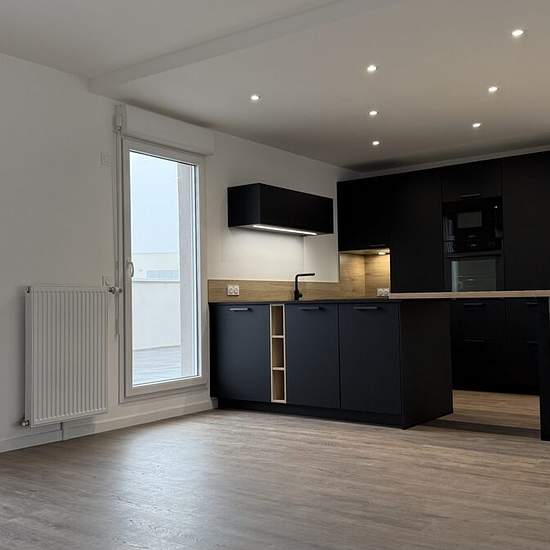 Appartement T4 de 97 m² - Rouen Rive Gauche, avenue Jean-Rondeaux. L’agence Rooftop vous propose à la location un appartement de 97 m², situé au dernier étage dans une résidence neuve avec ascenseur. Ce logement se compose : D’un séjour lumineux avec cuisine ouverte et équipée, de trois chambres avec placards, d’une salle de bains, d’une salle d’eau avec WC, de WC séparés, de deux terrasses offrant de beaux espaces extérieurs. Deux places de stationnement couvertes et boxées complètent ce bien. Chauffage et production d’eau chaude au gaz. Le...
